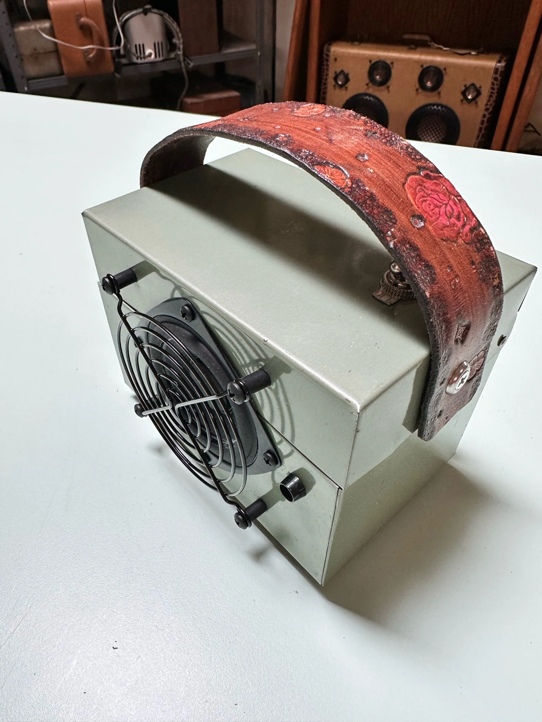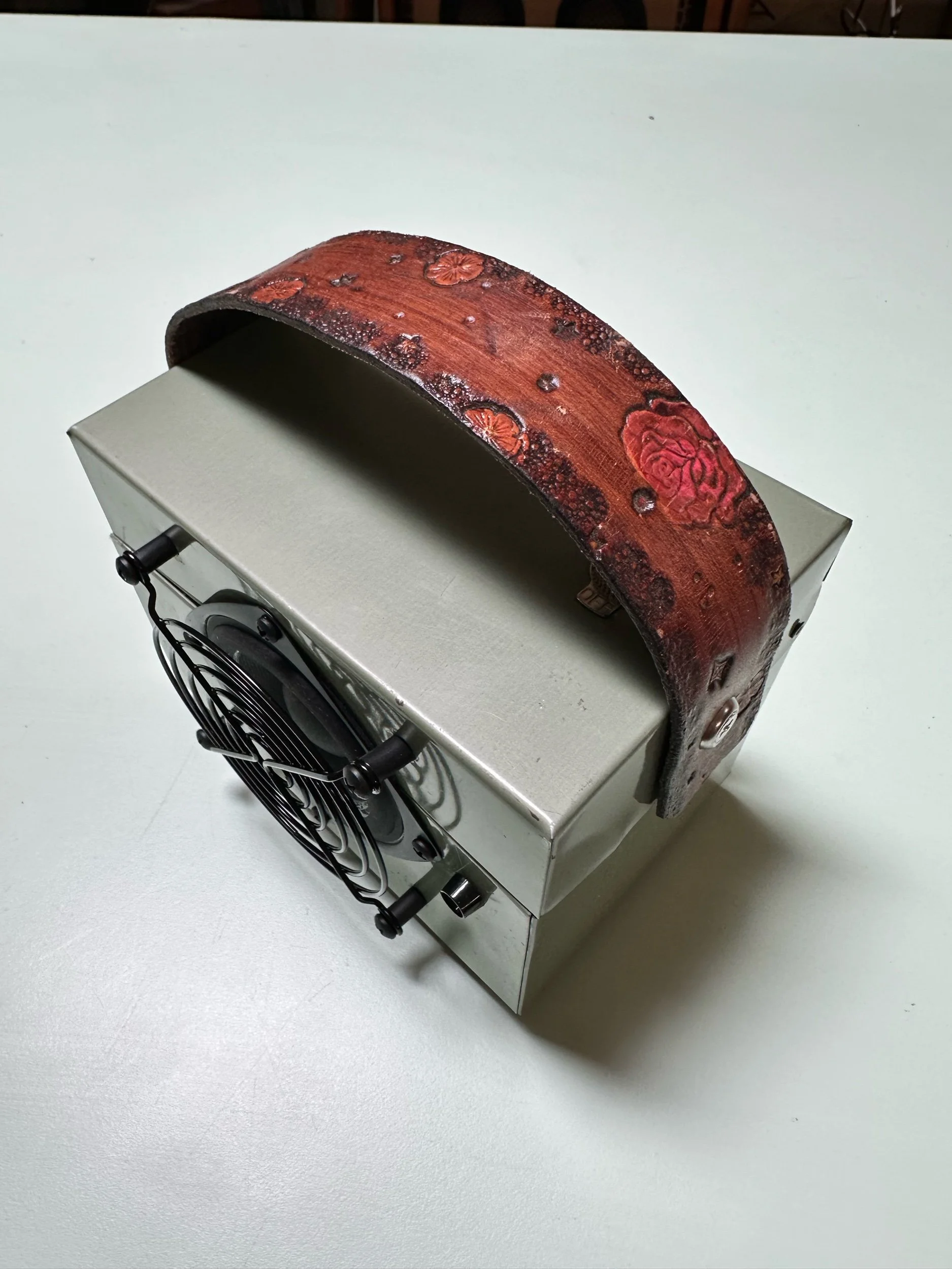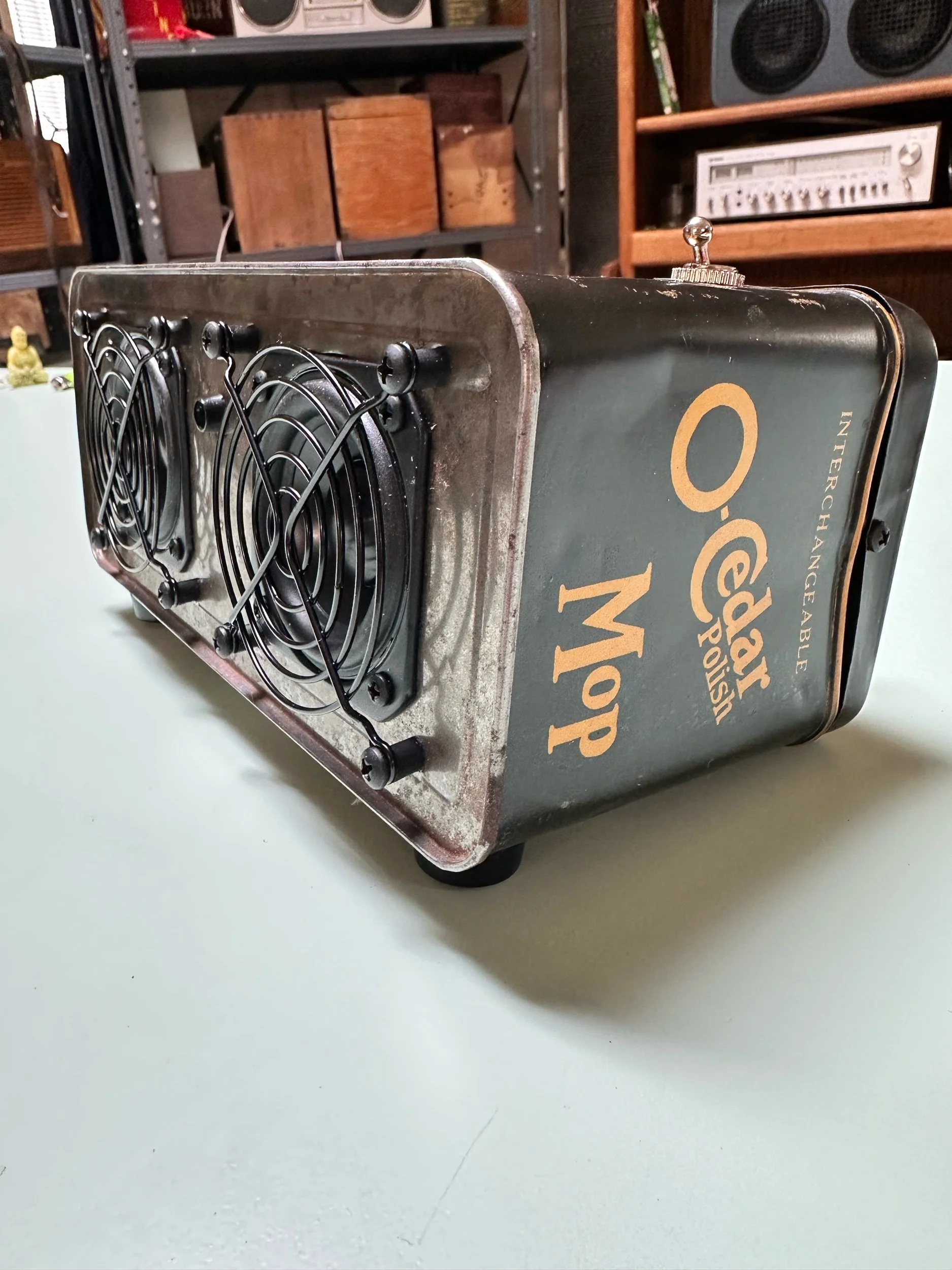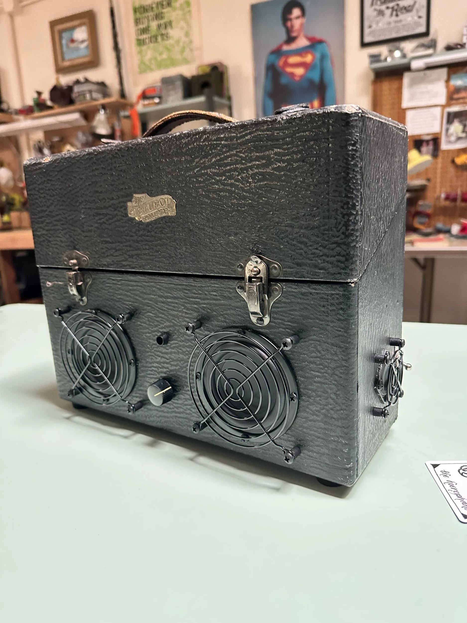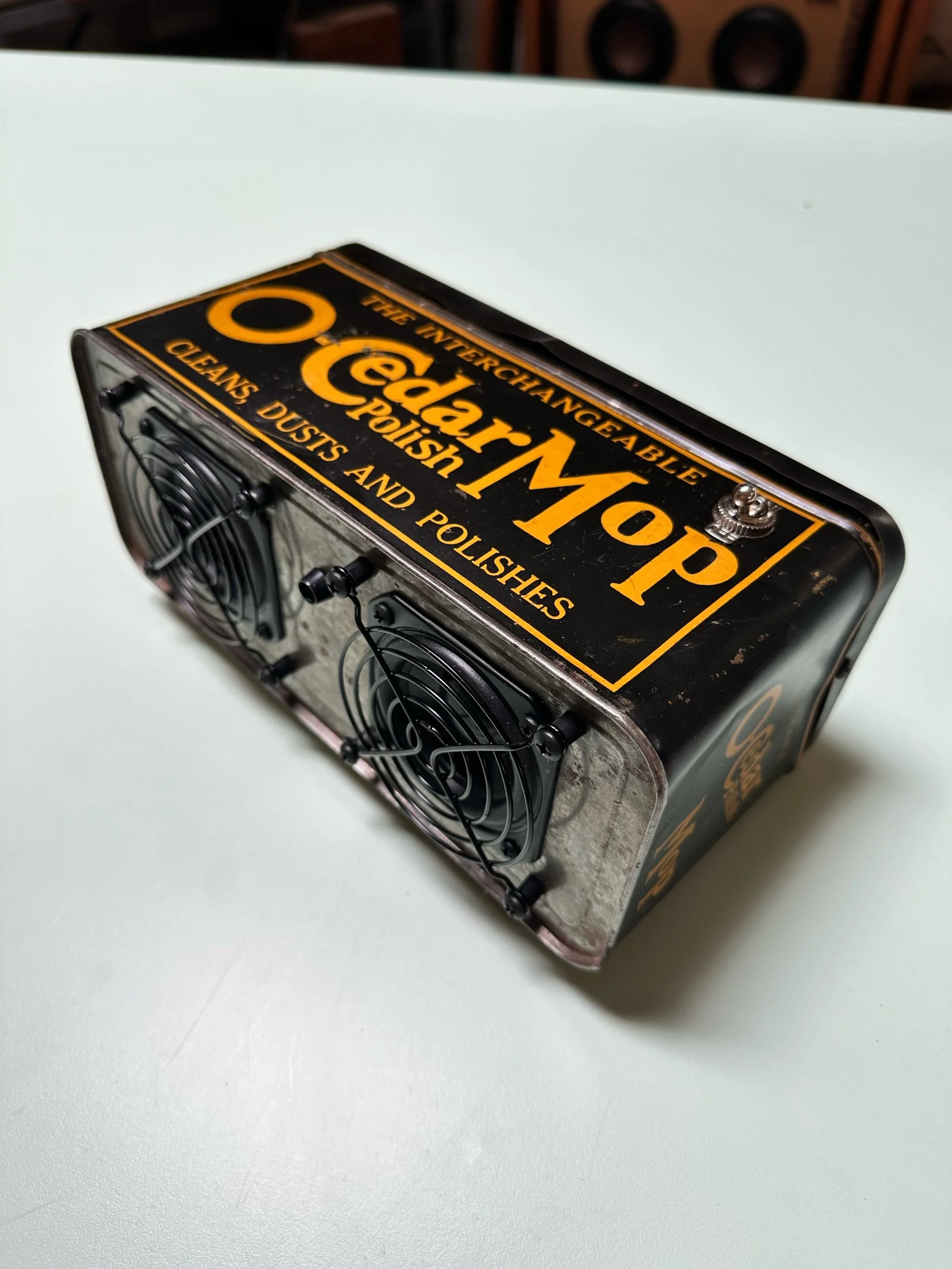 Crafted from a vintage lunch box. This one in particular was very well loved which adds to it’s charm. We only use vintage lunch boxes that do not have much value on their own so as not to upset any collectors. These are cleaned, re sealed and meticulously insulated to create a warm sound in a metal box.